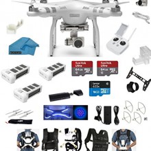 - Kit Includes: 1 DJI Phantom 3 Professional Quadcopter Drone, 1 Handheld Transmitter (Radio Controller), 1 Mobile Device Holder, 1 Smart Battery Charger, 2 TOTAL DJI BATTERIES , 1 SANDISK 32 GB EXTREME SD CARDS, KOOZAM HEADLIGHT, KOOZAM LIGHT STRIP, UNIVERSAL SD CARD READER, KOOZAM CAMERA LENS COVER CAP, SUN HOOD, GIMBAL GUARD, KOOZAM CLEANING CLOTH, KOOZAM CARRY ON BACKPACK STYLE OPEN SYSTEM WITH HARNESS